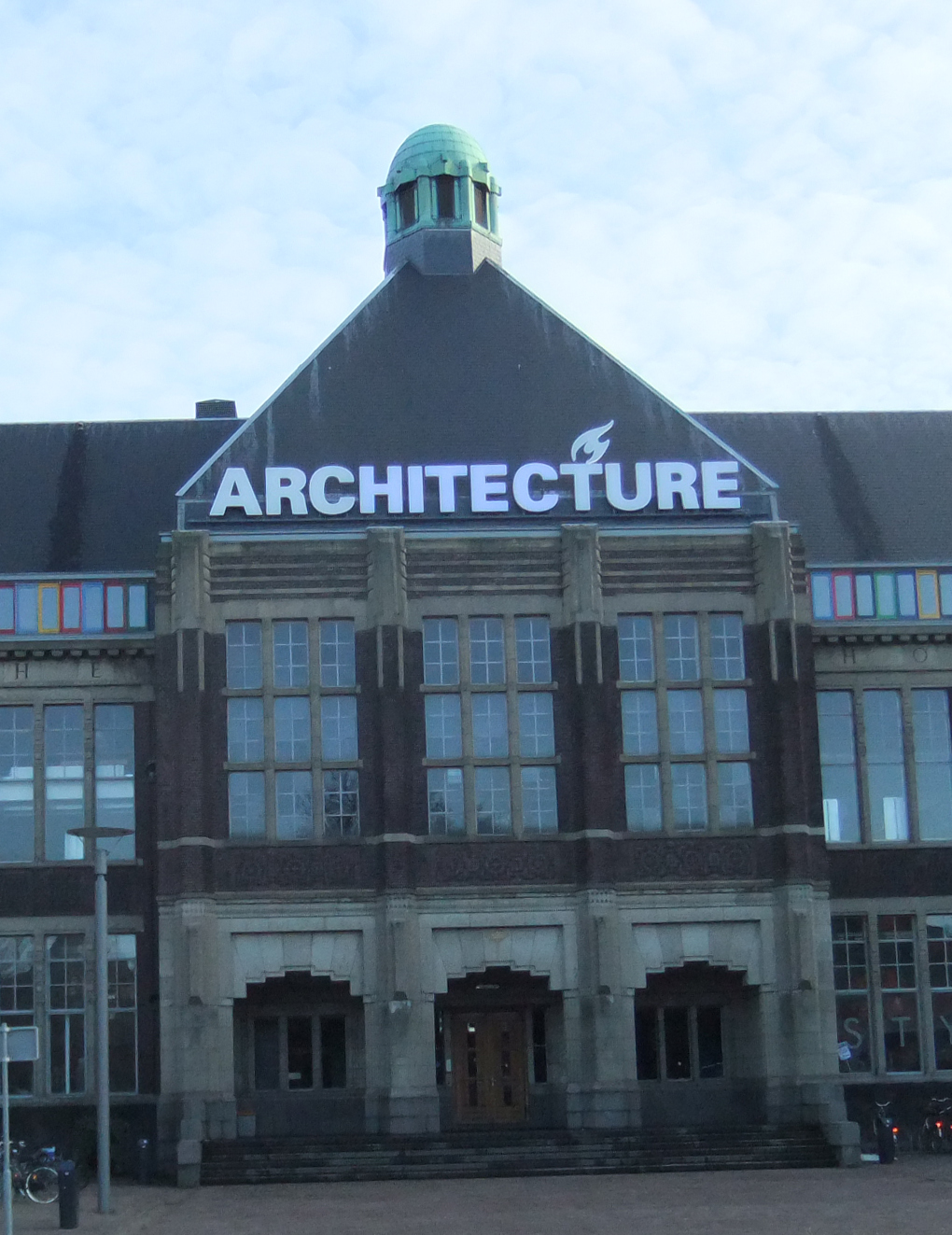 Architecture prijkt op gevel Bouwkunde 01/01/2011 lid bv TU Noord Campus, Kennisstad / TICD Eind december zijn de enorme letters boven de ingang van het gebouw voor Bouwkunde aan de Julianalaan gemonteerd.