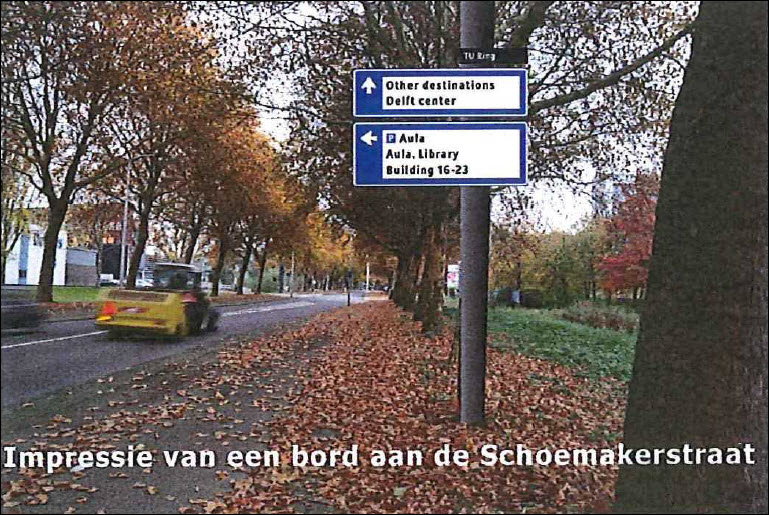 Vanaf 1 december wordt de nieuwe bewegwijzering van de TU Delft geplaatst.