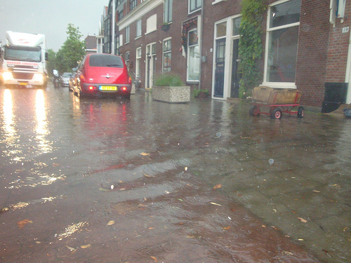 De riolering kon de overvloedige regen maandag niet verwerken. Diverse straten waren ondergelopen en gedeelten moest worden afgesloten voor verkeer.  In de Nassaulaan stroomde water de huizen binnen. Op de Prof Telderslaan is de brandweer enige tijd bezig geweest om enkele kelders leeg te pompen. Ook de TU-Delft had wateroverlast. Dit toont nogmaals aan dat een goede waterbeheersplan noodzakelijk is. Door alle nieuwbouw versteent de wijk, waarmee  de natuurlijke afwateringen en waterbergingen verdwijnen.