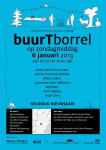 Nieuwjaarsborrel Zeeheldenbuurt 6 januari 03/01/2013 lid bv TU Noord Buurtaktiviteiten De traditionele nieuwjaarsborrel van de Zeeheldenbuurt is er weer. Georganiseerd door de buurTvrouwen. Van 16 tot 18 uur op het pleintje van de voormalige Bavinckschool aan de Maerten Trompstraat.